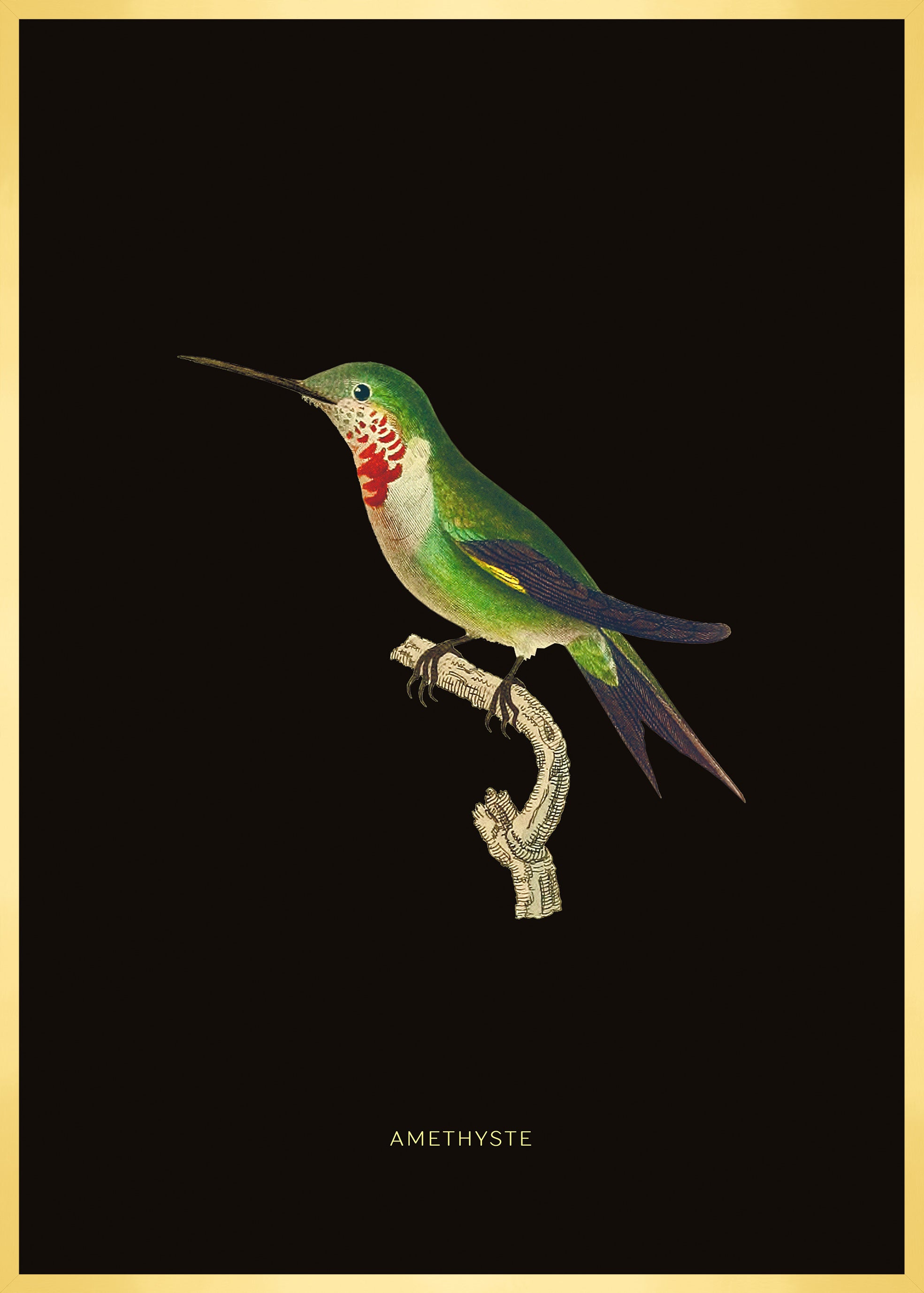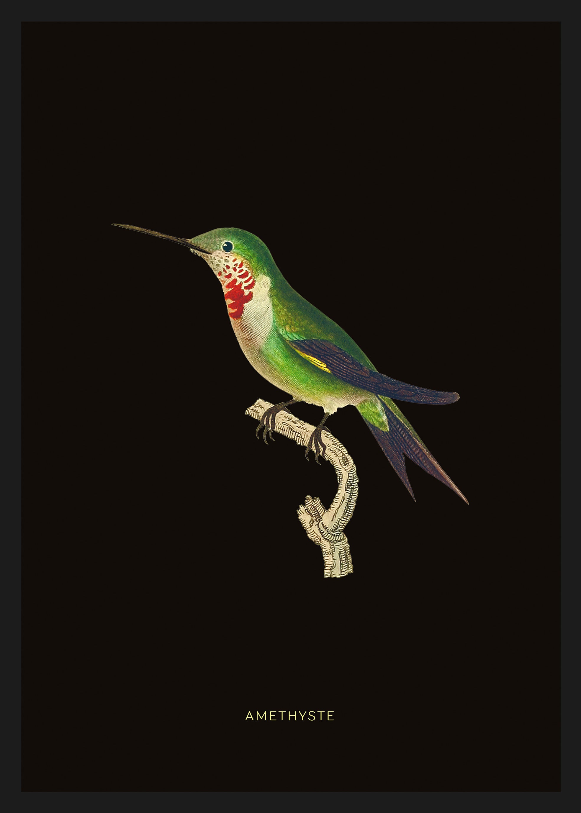 Illustration décorative d 'un colibri portant le joli nom d 'Améthyste.