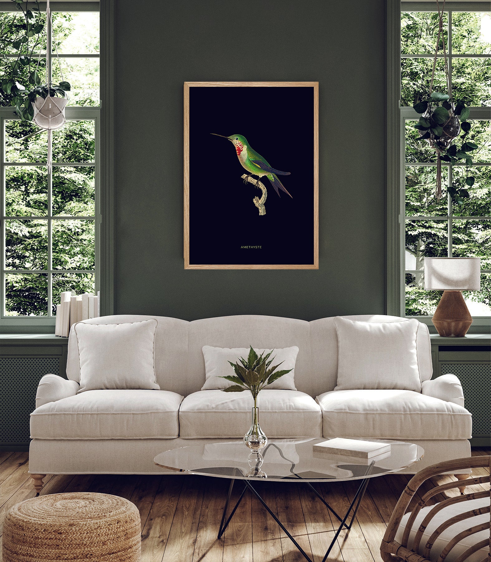 Colibri Améthyste fond noir