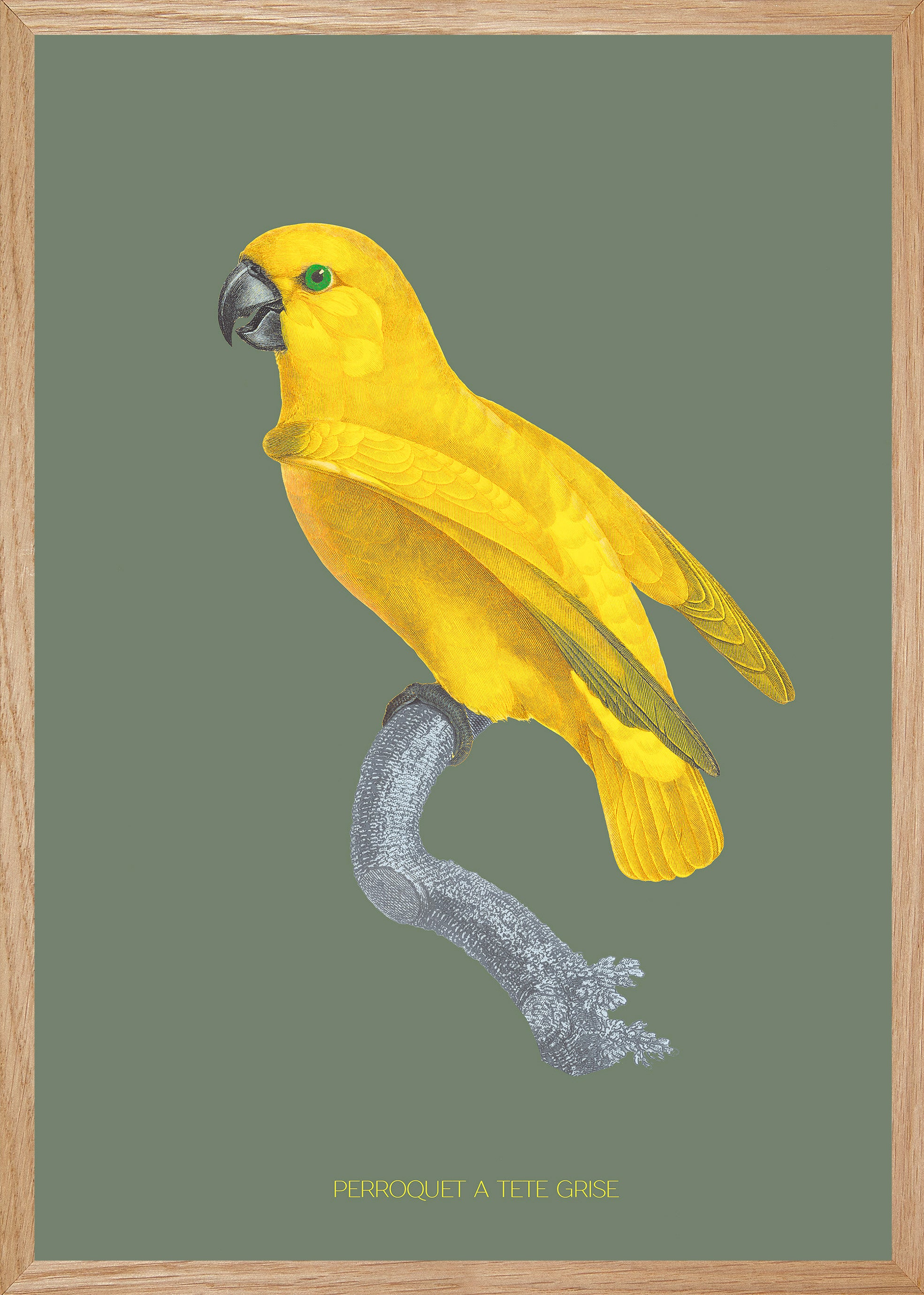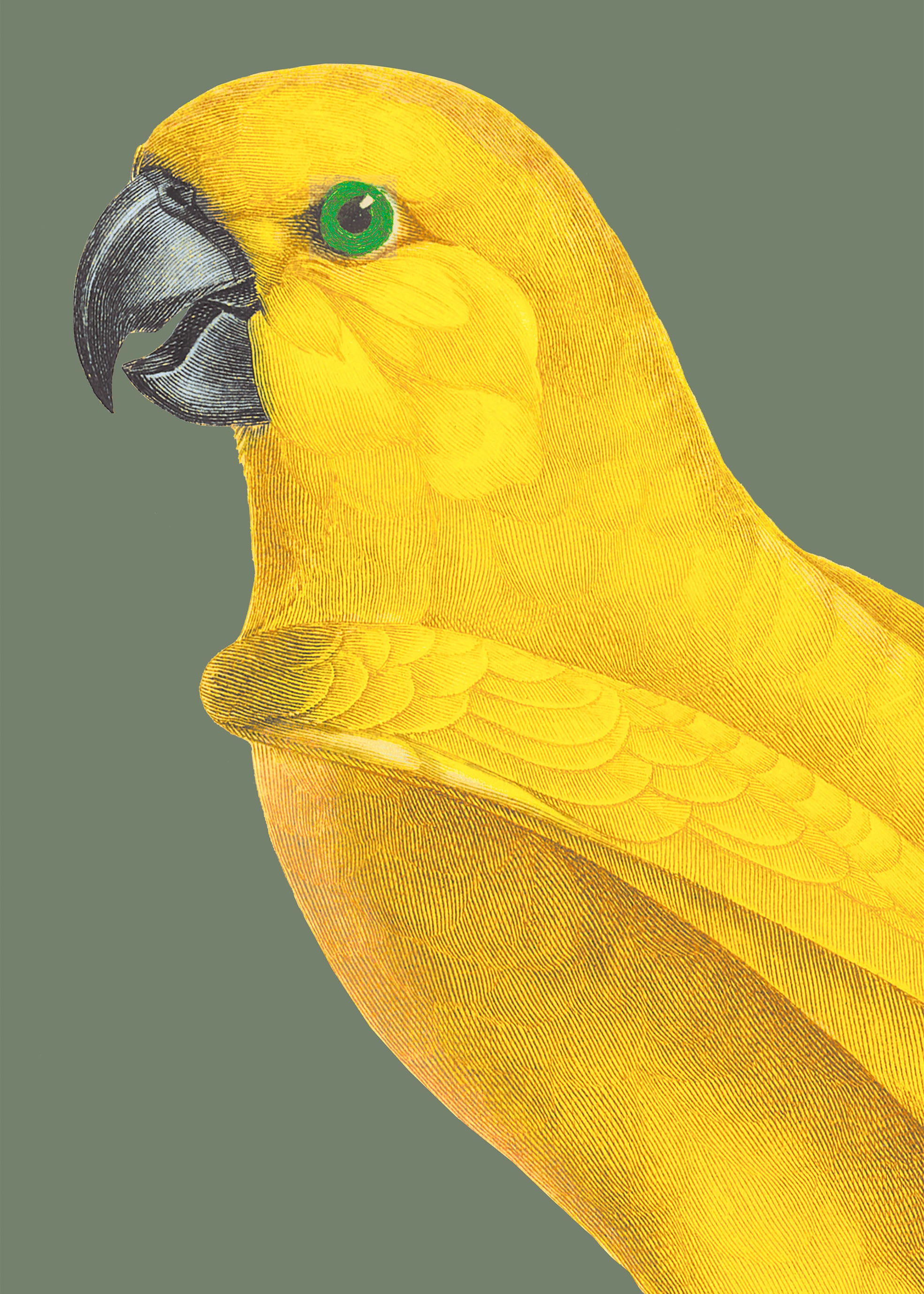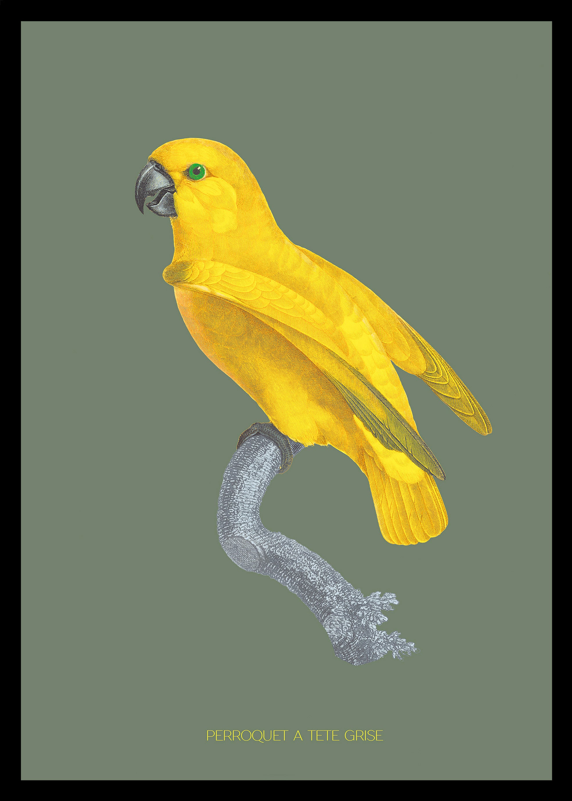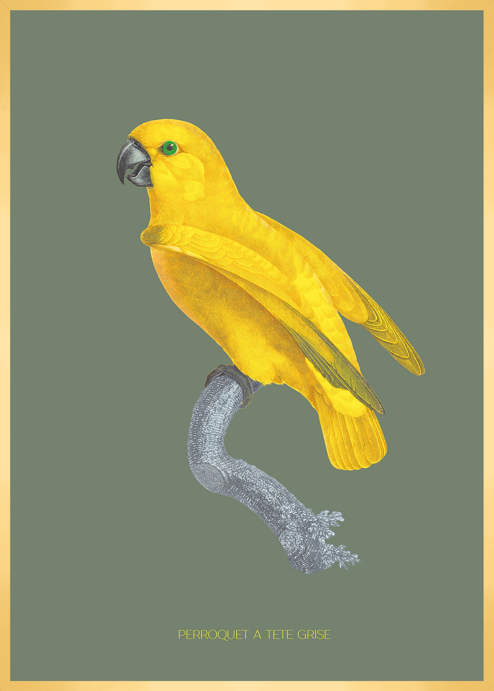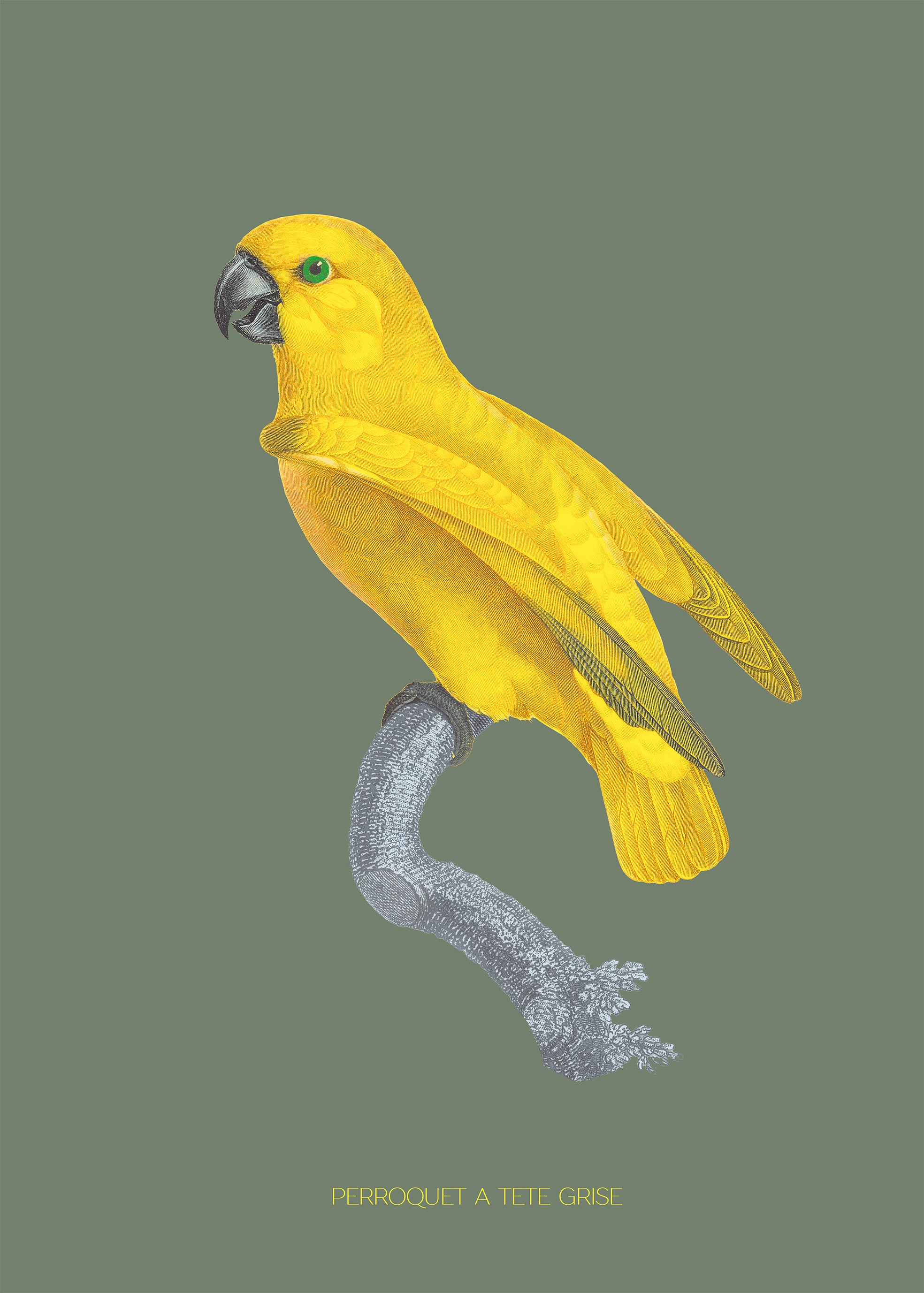 Ce perroquet à un plumage d'un jaune très solaire. Cet oiseau est de toute beauté. Cette illustration est une interprétation d'un dessin scientifique du célèbre dessinateur Barraband.