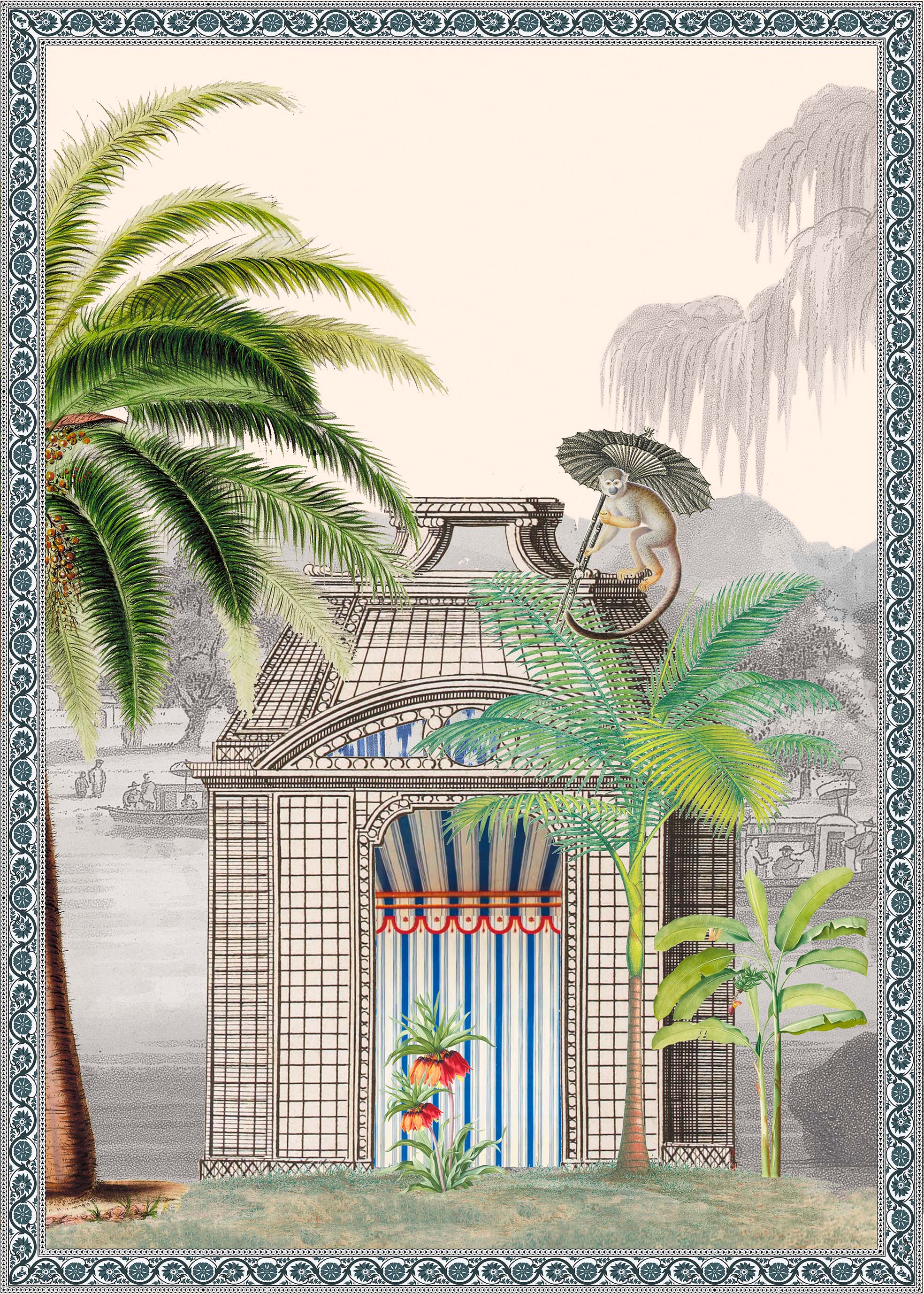 Cette illustration est l’une des déclinaisons du panoramique Botanica. Elle propose un close-up de ce paysage d’Extrême-Orient et peut être associée à l’illustration complémentaire, partie droite du décor, pour composer un ensemble panoramique à l’effet résolument décoratif. Les deux œuvres sont soulignées par un liseret gris élégant, apportant une finition raffinée à l’ensemble.