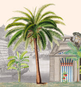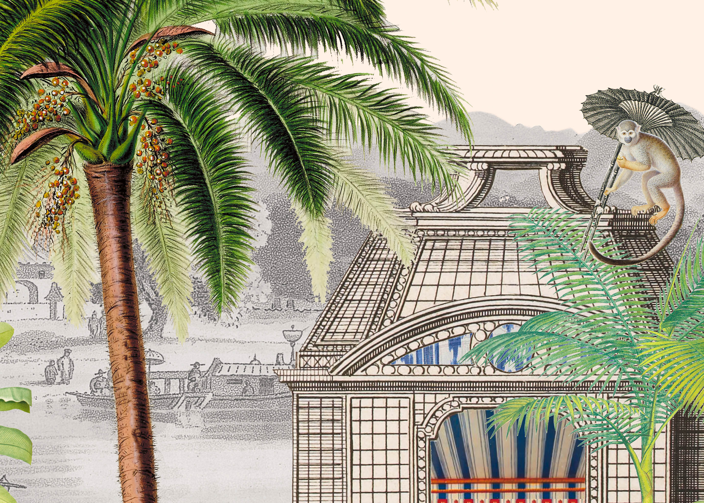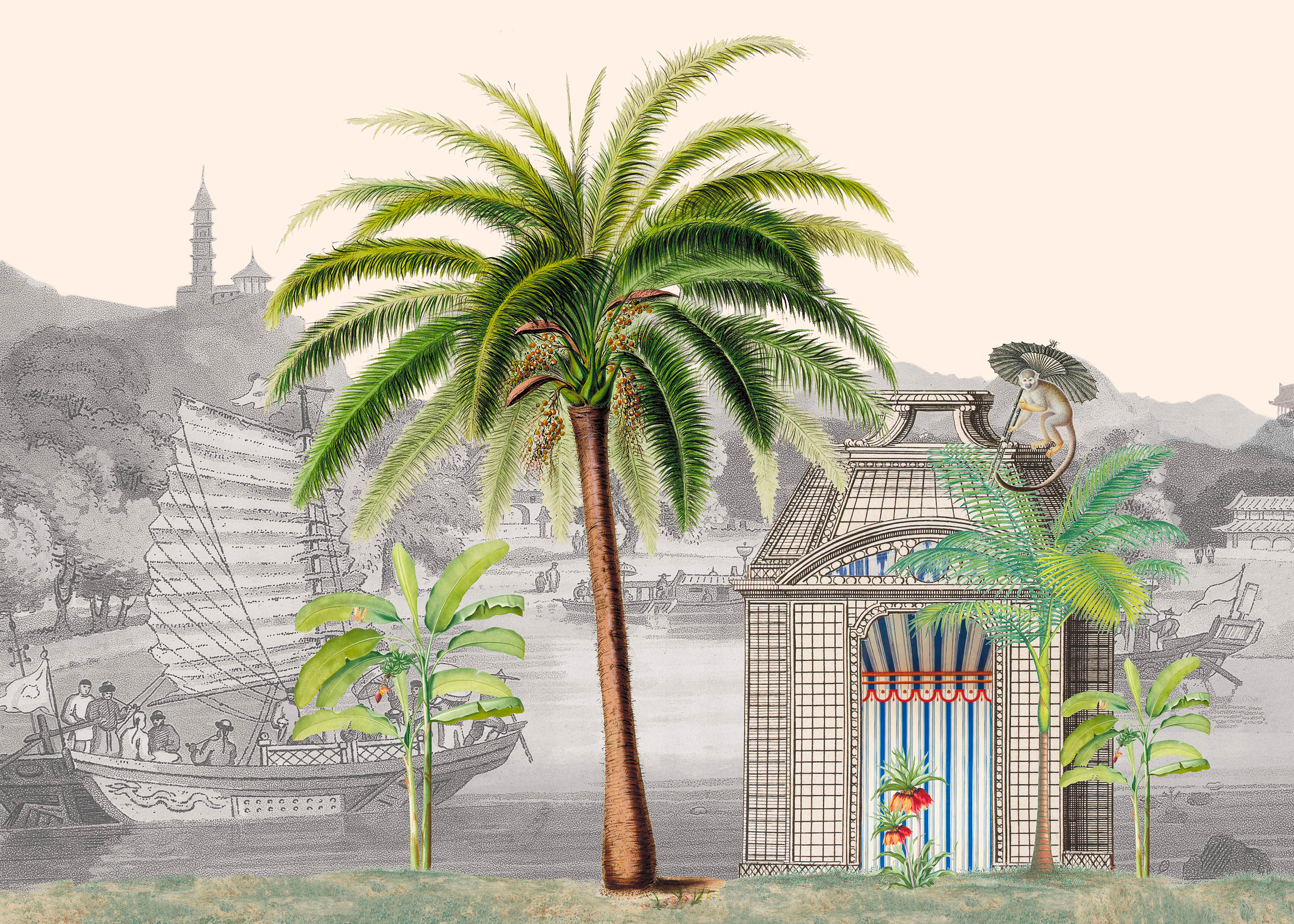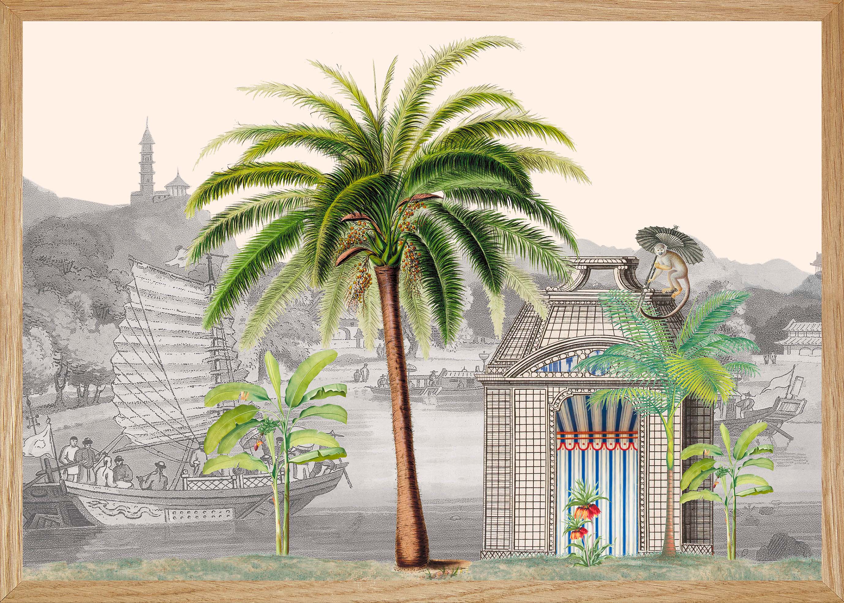 Cette illustration est un véritable décor poétique et immersif, invitant au voyage et à l’émerveillement. Ce panorama de palmiers majestueux et de jonques voguant sur le fleuve Amour est conçu comme une scène onirique et intemporelle, transformant les espaces en véritables paysages d’imaginaire, propices à la contemplation et à l’évasion.
