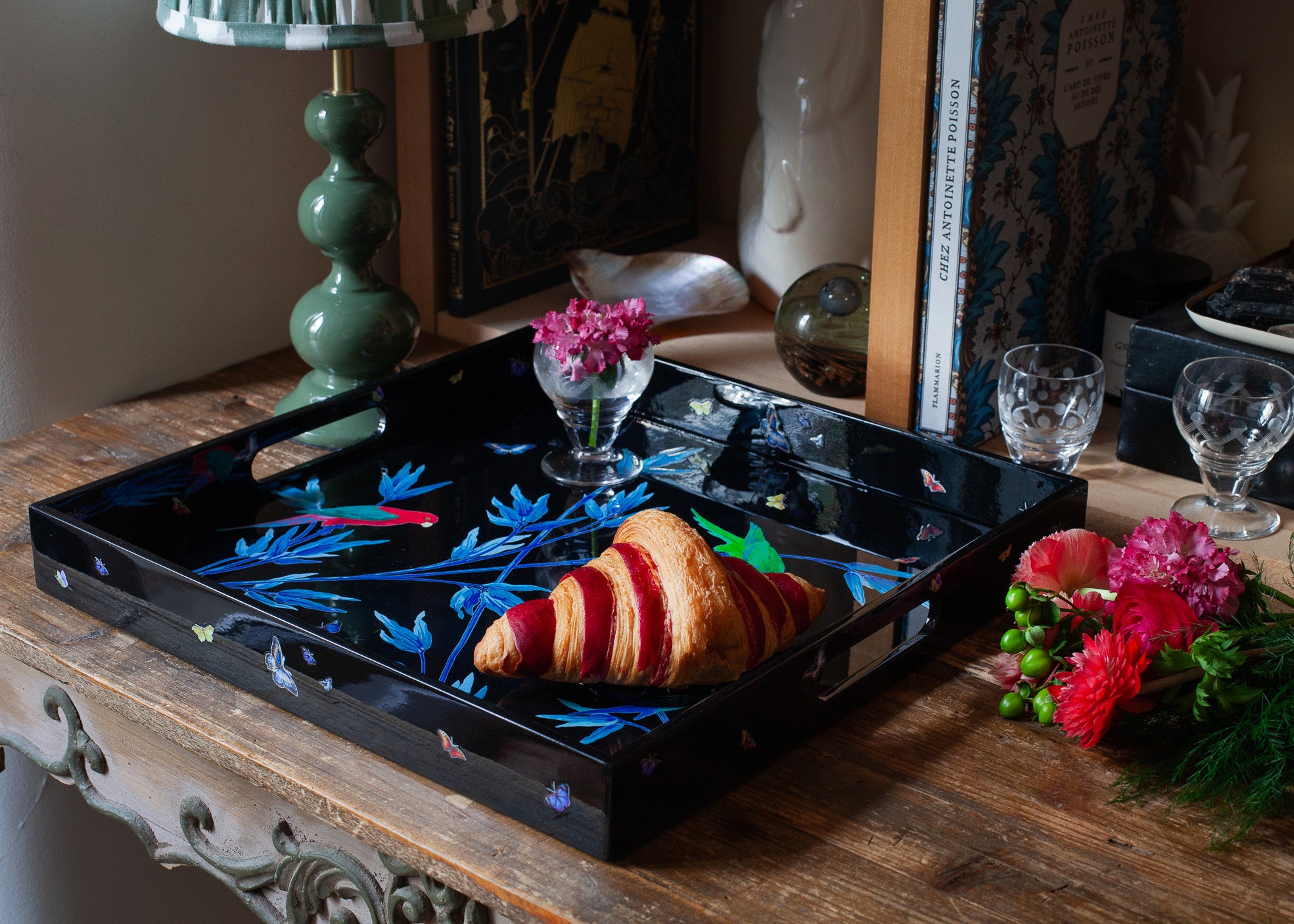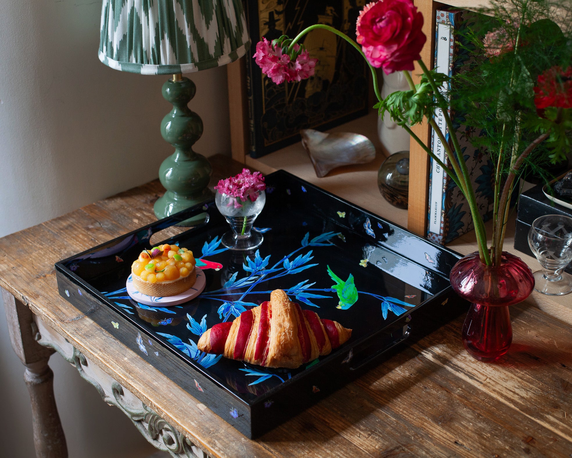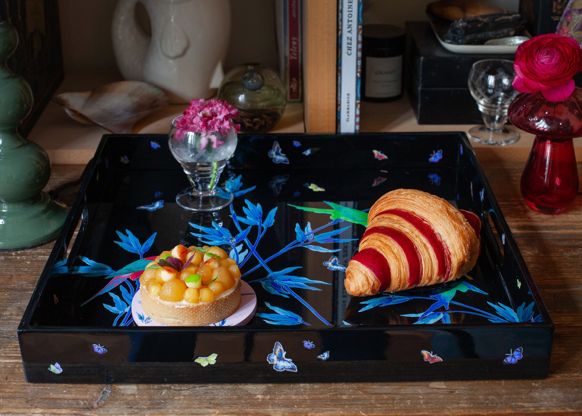 Plateau Carré en Laque Noire — Jardin des Merveilles