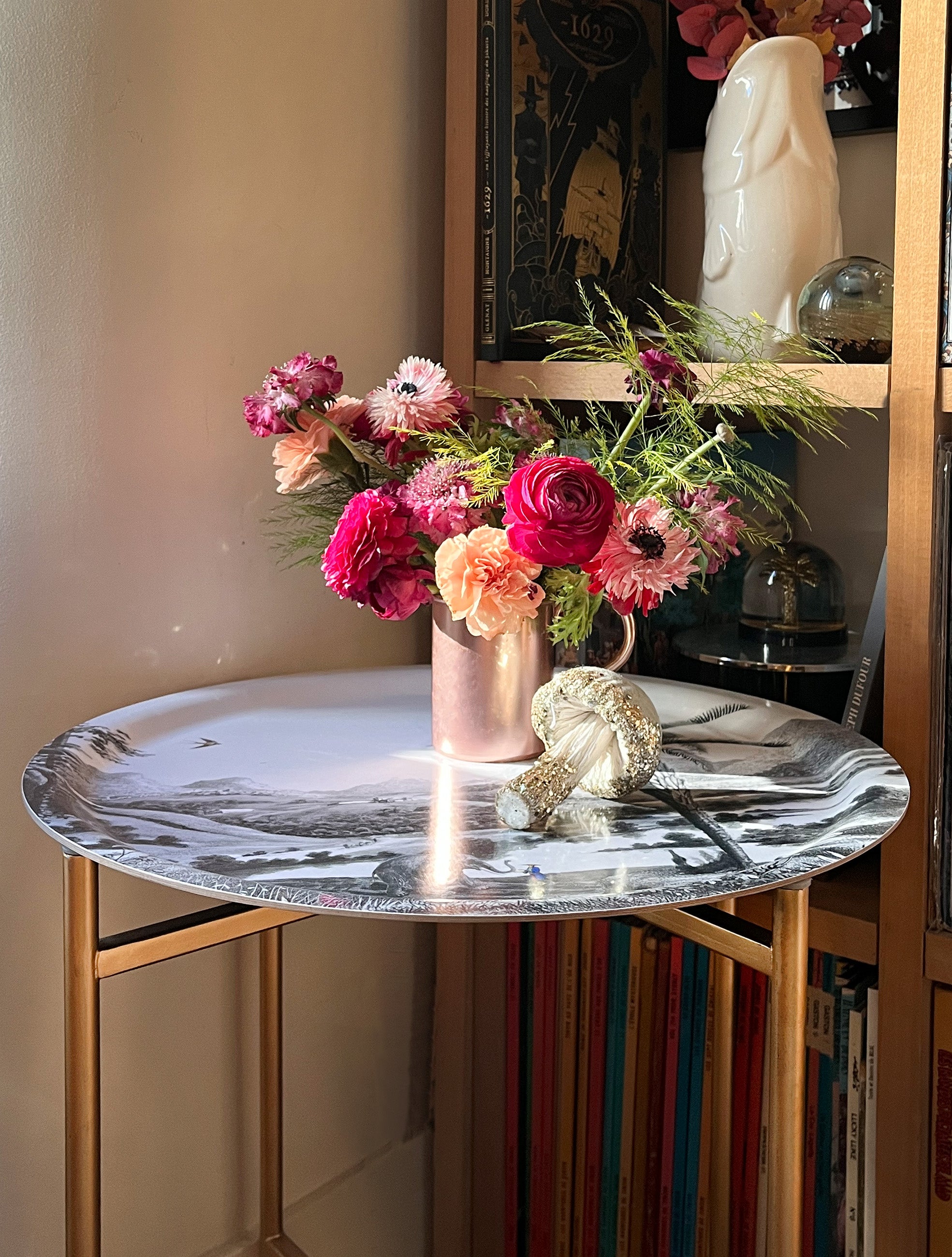 Piètement pour table d'appoint en métal or plateau Mékong