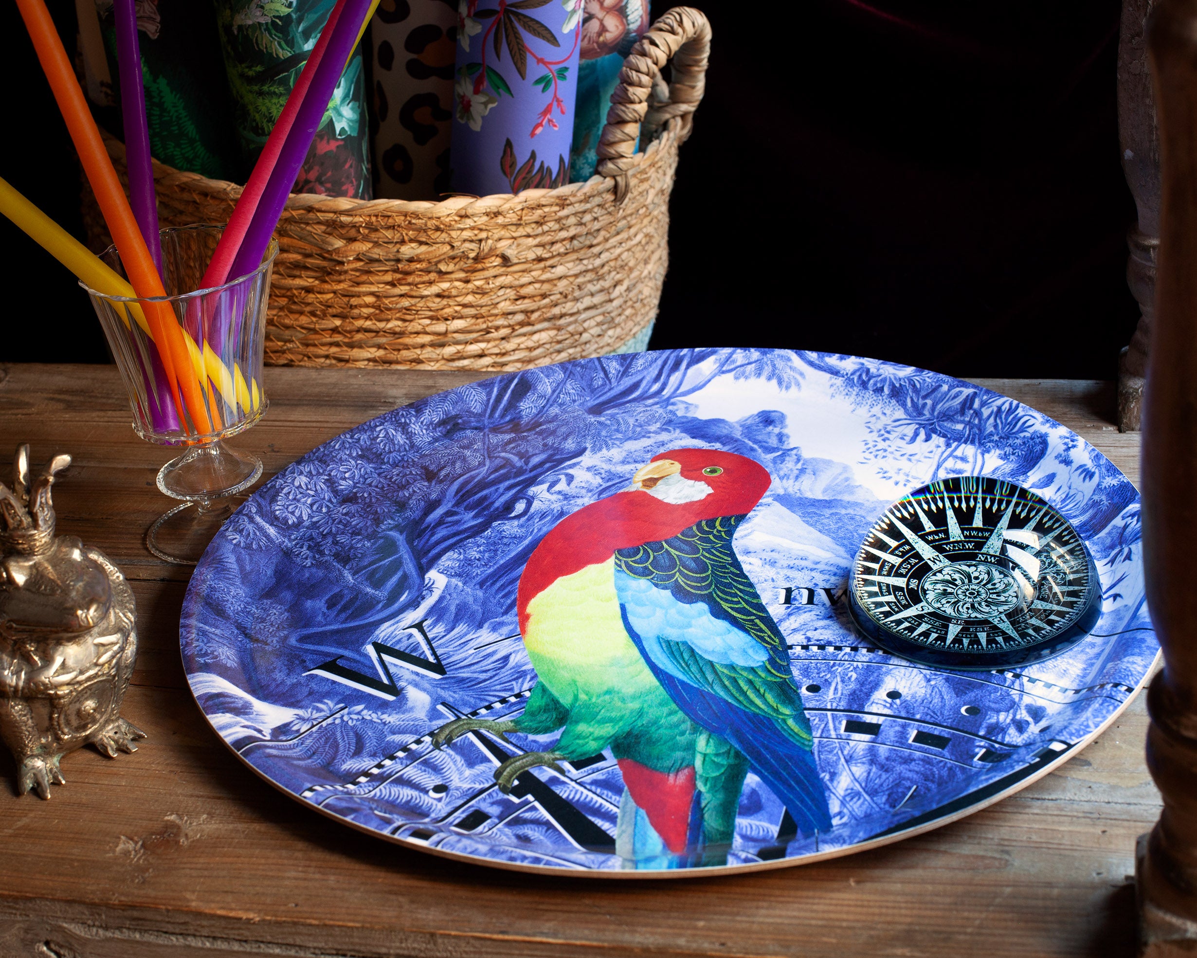 Parrot and compass rose tray