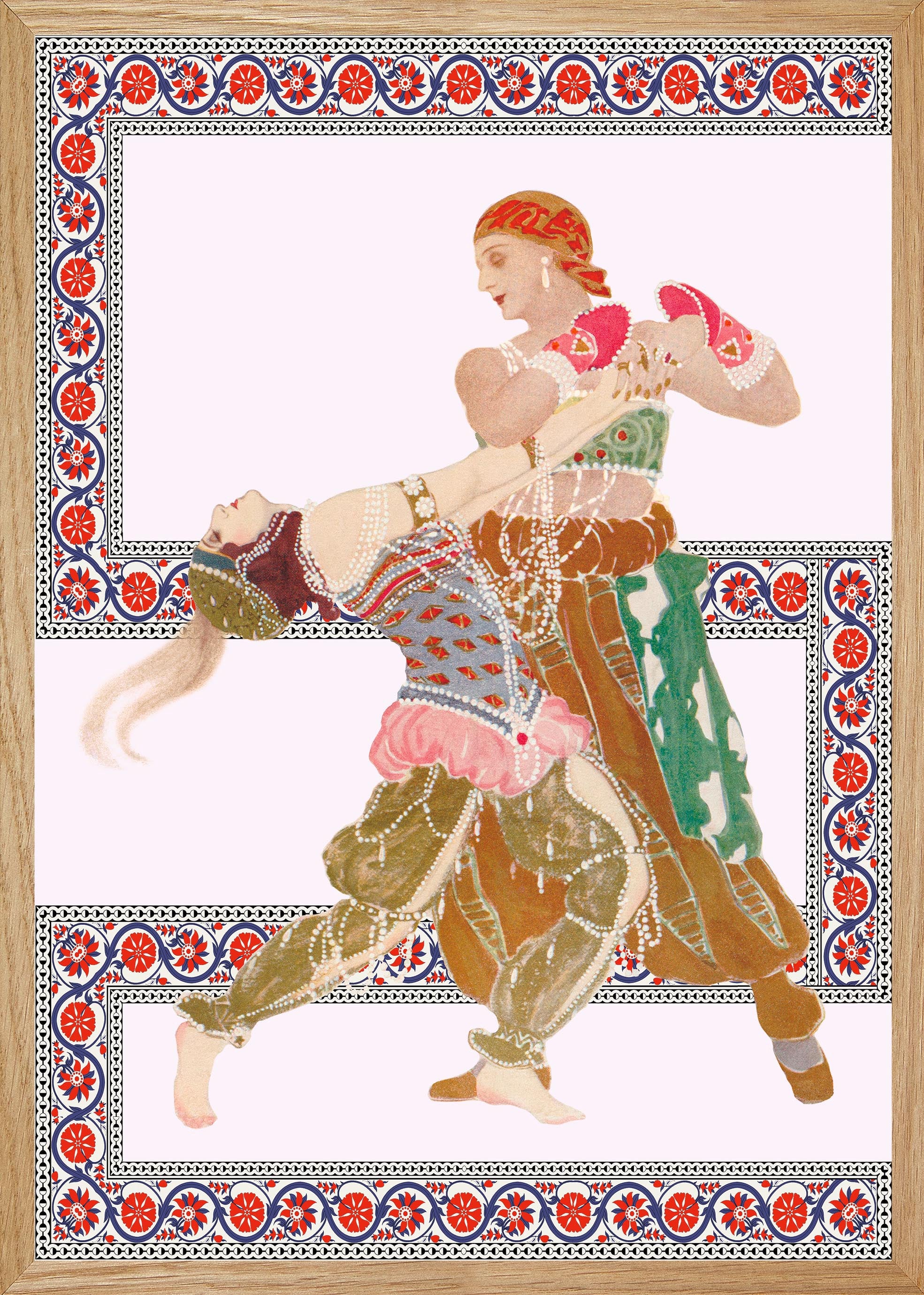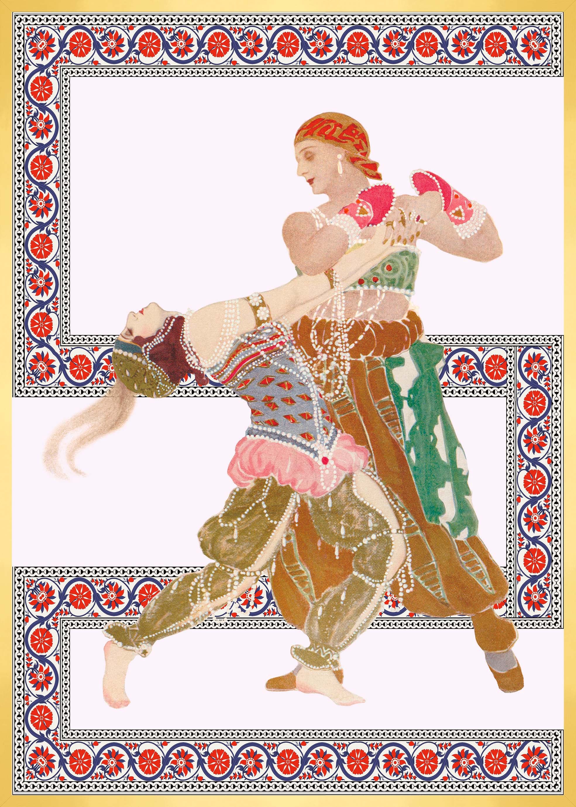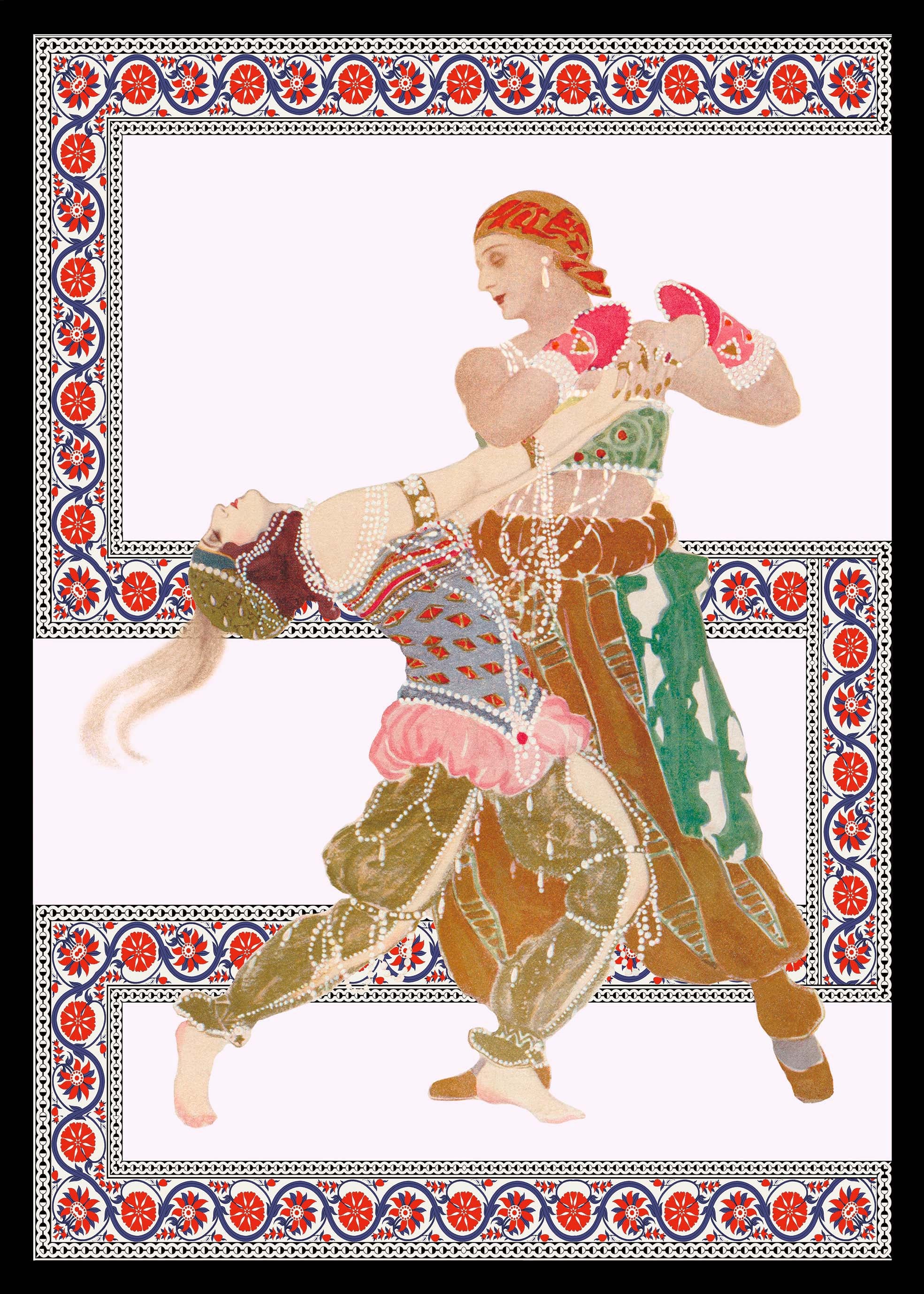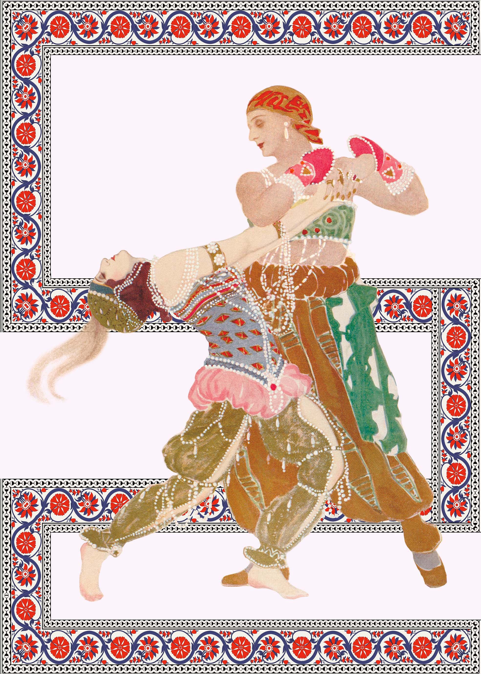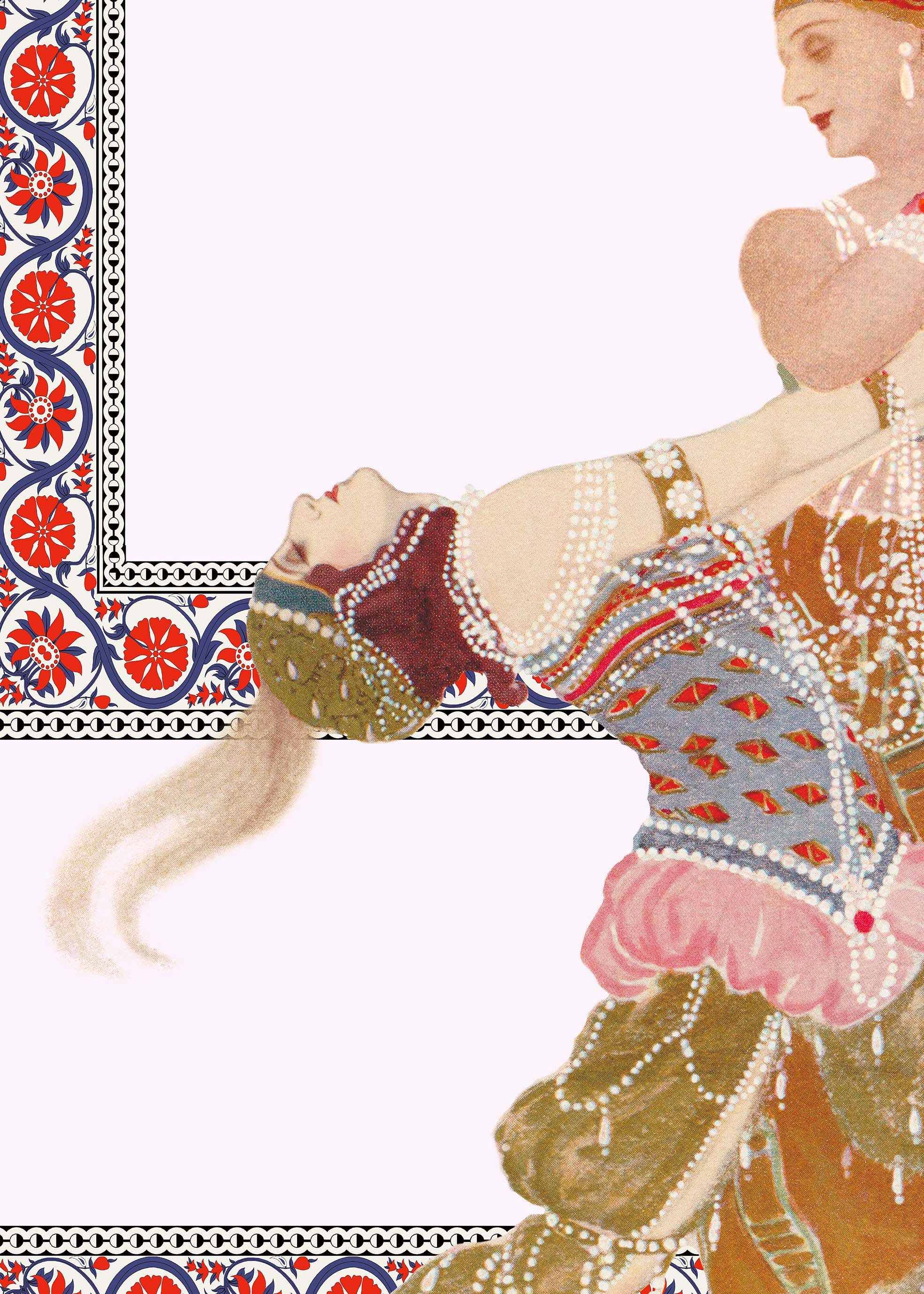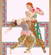 illustration of Diaghilev's opera "La Péri" illustrating Alexander The Great or Iskender in Persian. This one who sets out in search of immortality because mages predict a near end for him. Iskender goes to the ends of the Earth, he meets a sleeping peri who holds the Flower of immortality, He steals it from her, and in doing so, he awakens her. Without this Flower, she cannot reach heaven and find her place in the light of Ormuzd. Then Peri bewitches her thief with a seductive dance and takes back her property. Iskender understands that he must die.