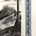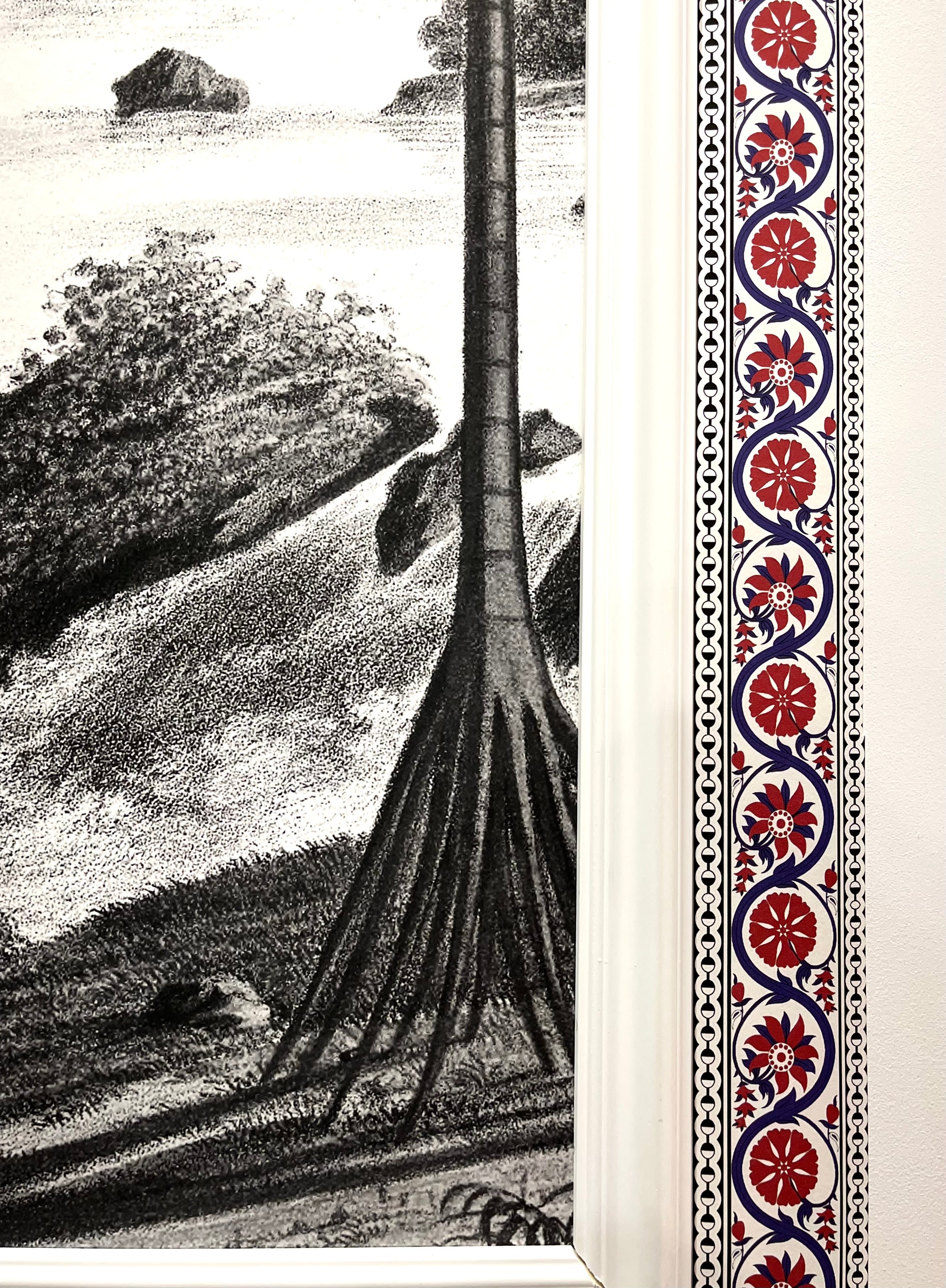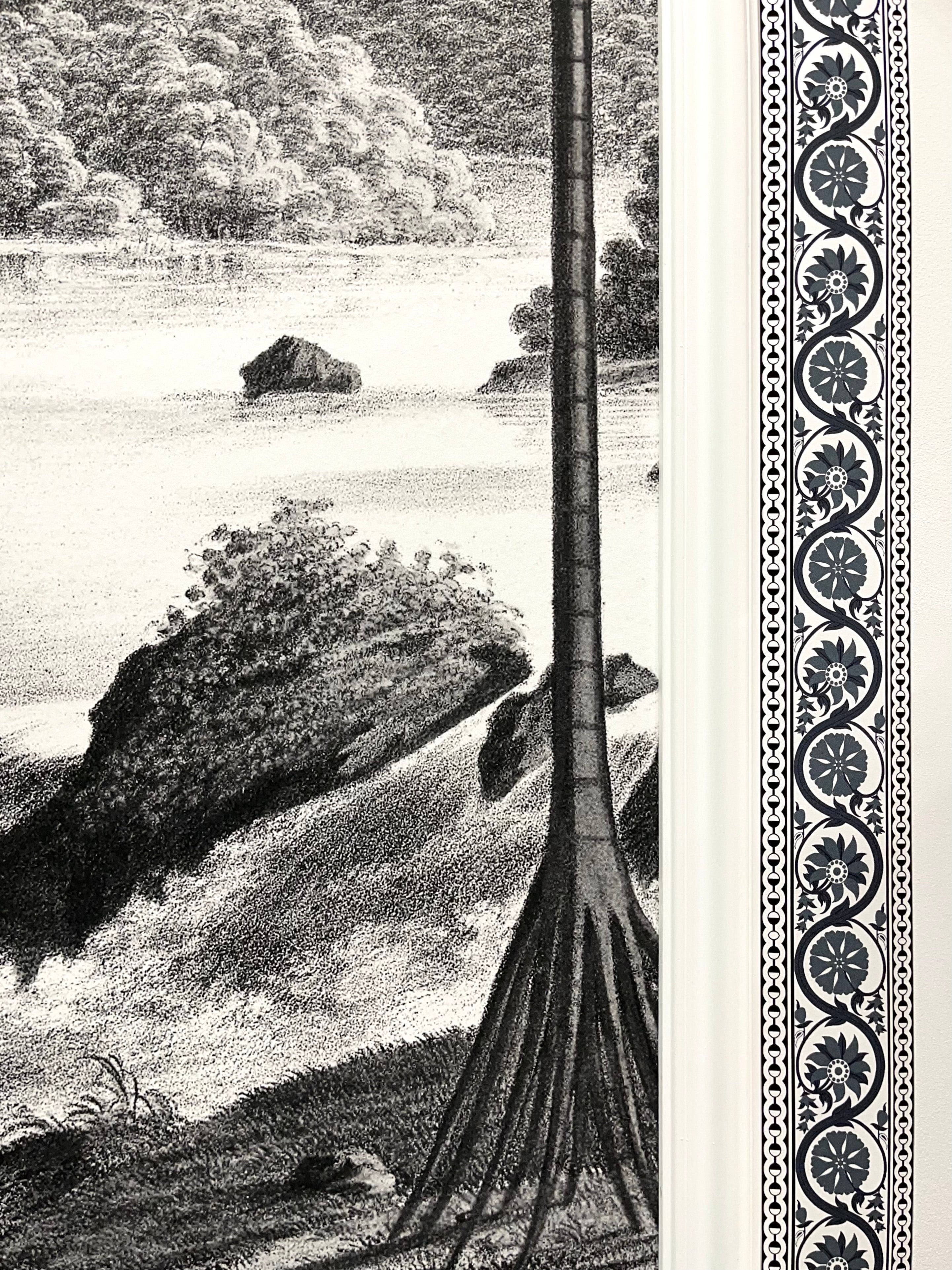 Made in 1862 by Joseph Fuchs for the Jules Desfossé factory, this panoramic wallpaper: Brazil depicts an exotic landscape very fashionable in the 19th century by exalting the tropical character of the country, through idealized fauna and flora. Scarlet ibises, parrots, peacocks, birds of paradise and pelicans flit around the palm trees and lush plants.