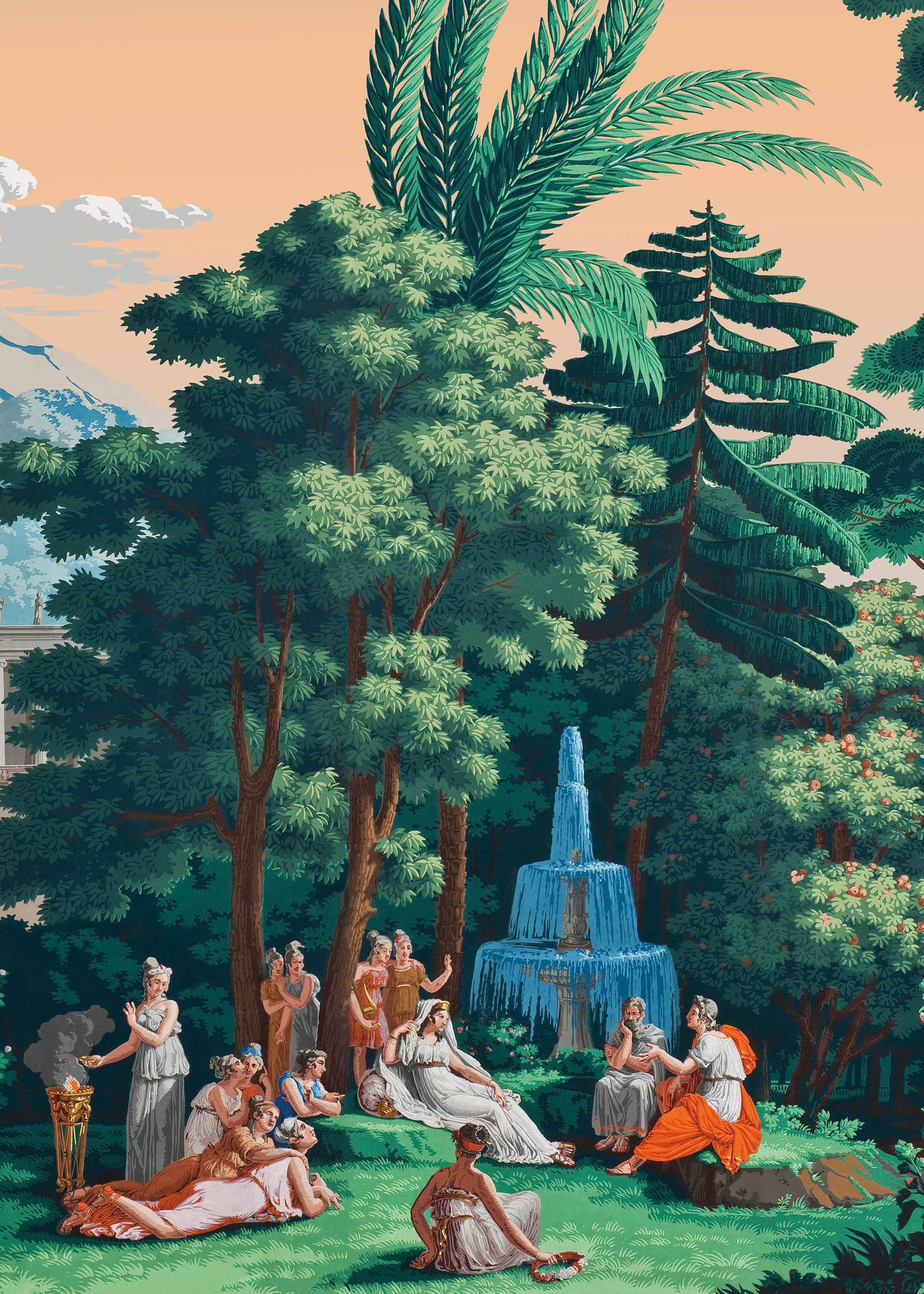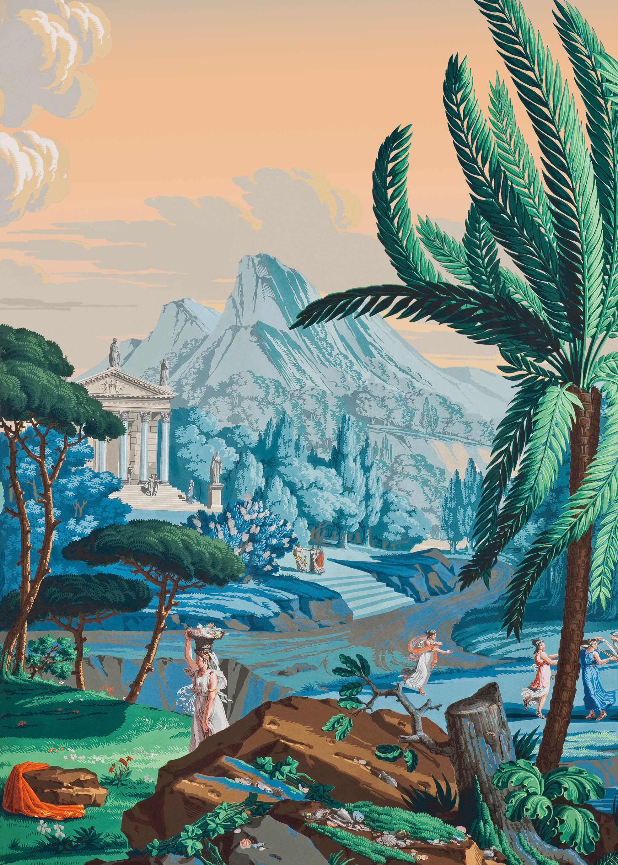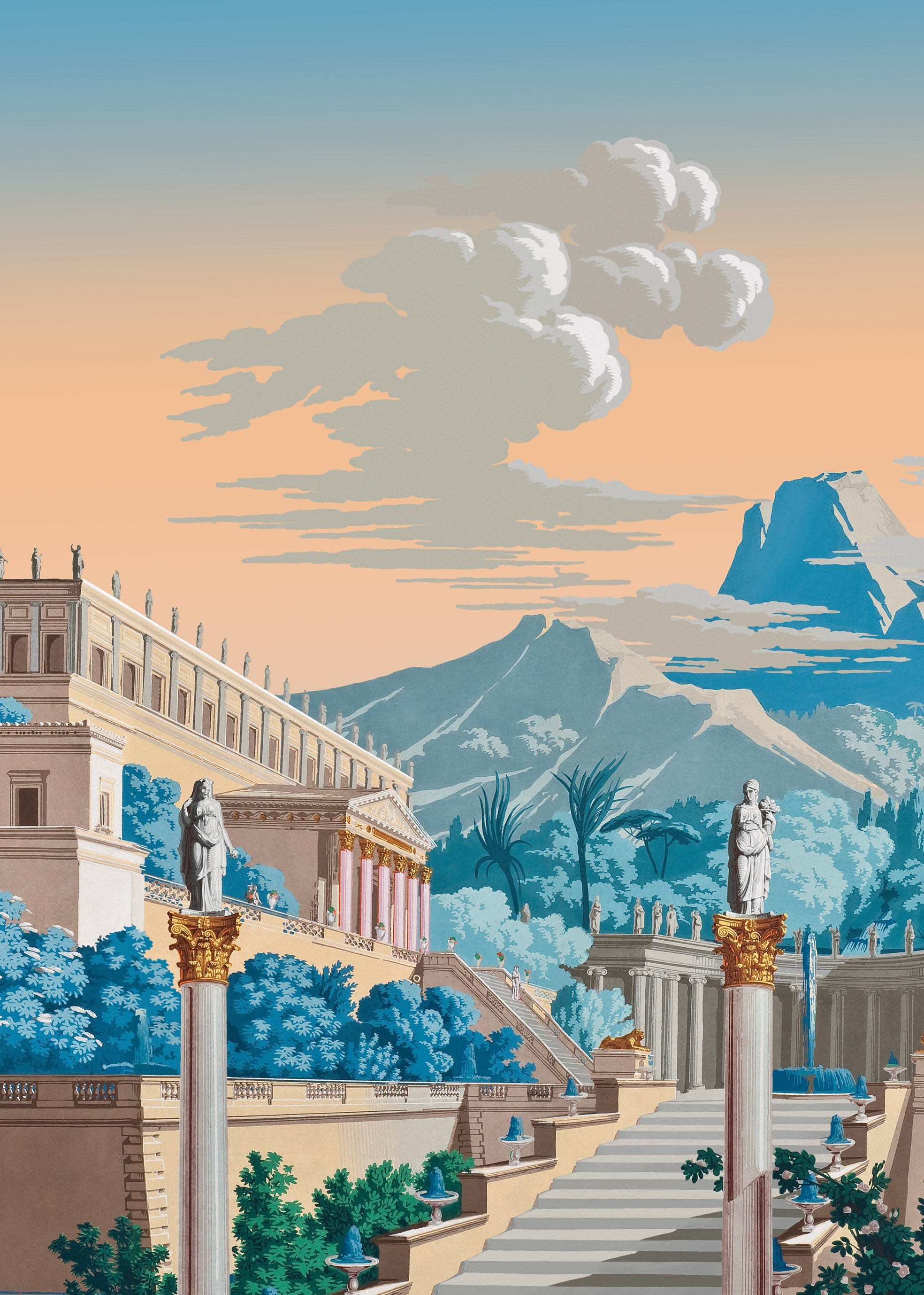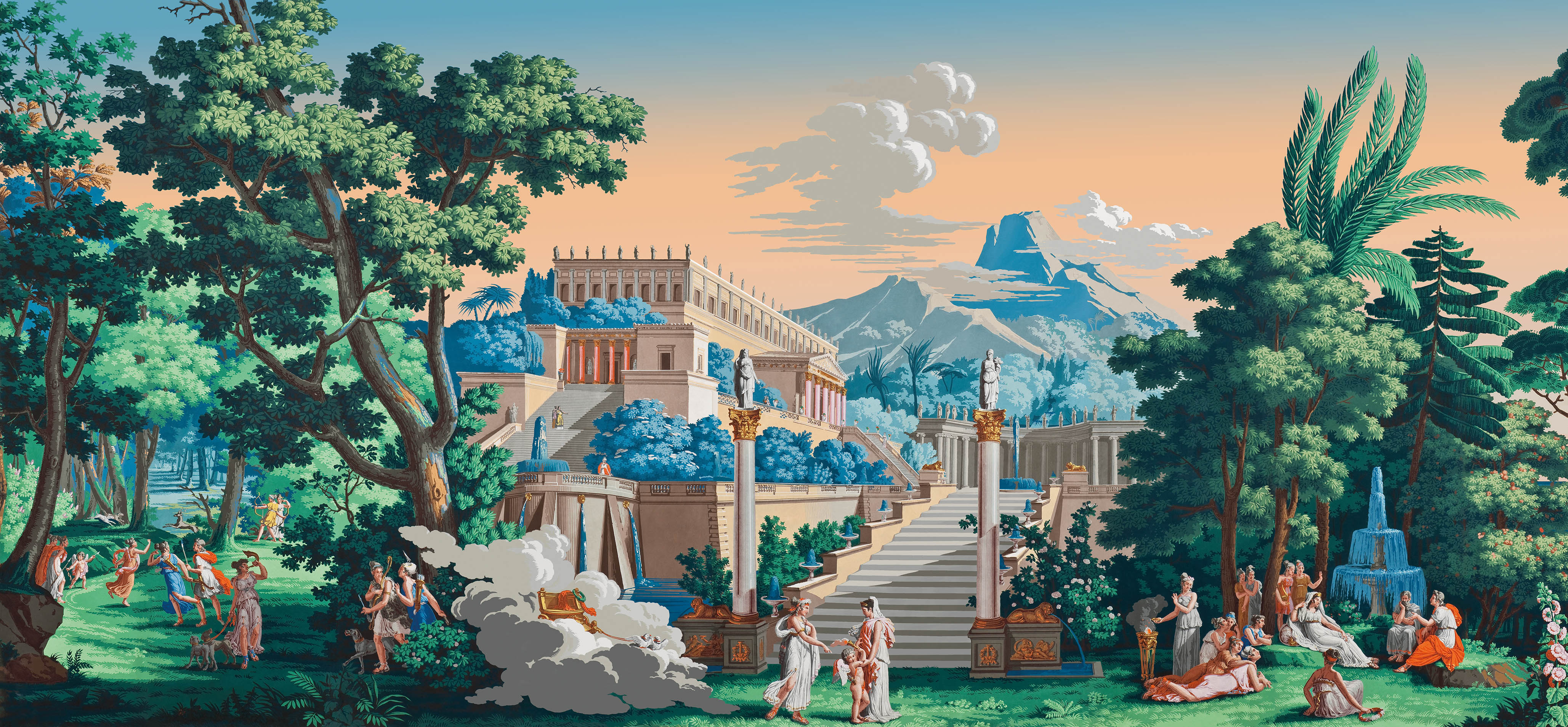 Inspired by the work of Fénelon, this magnificent decoration of an Antique landscape was published in 1818 by the famous Joseph Dufour Manufacture,