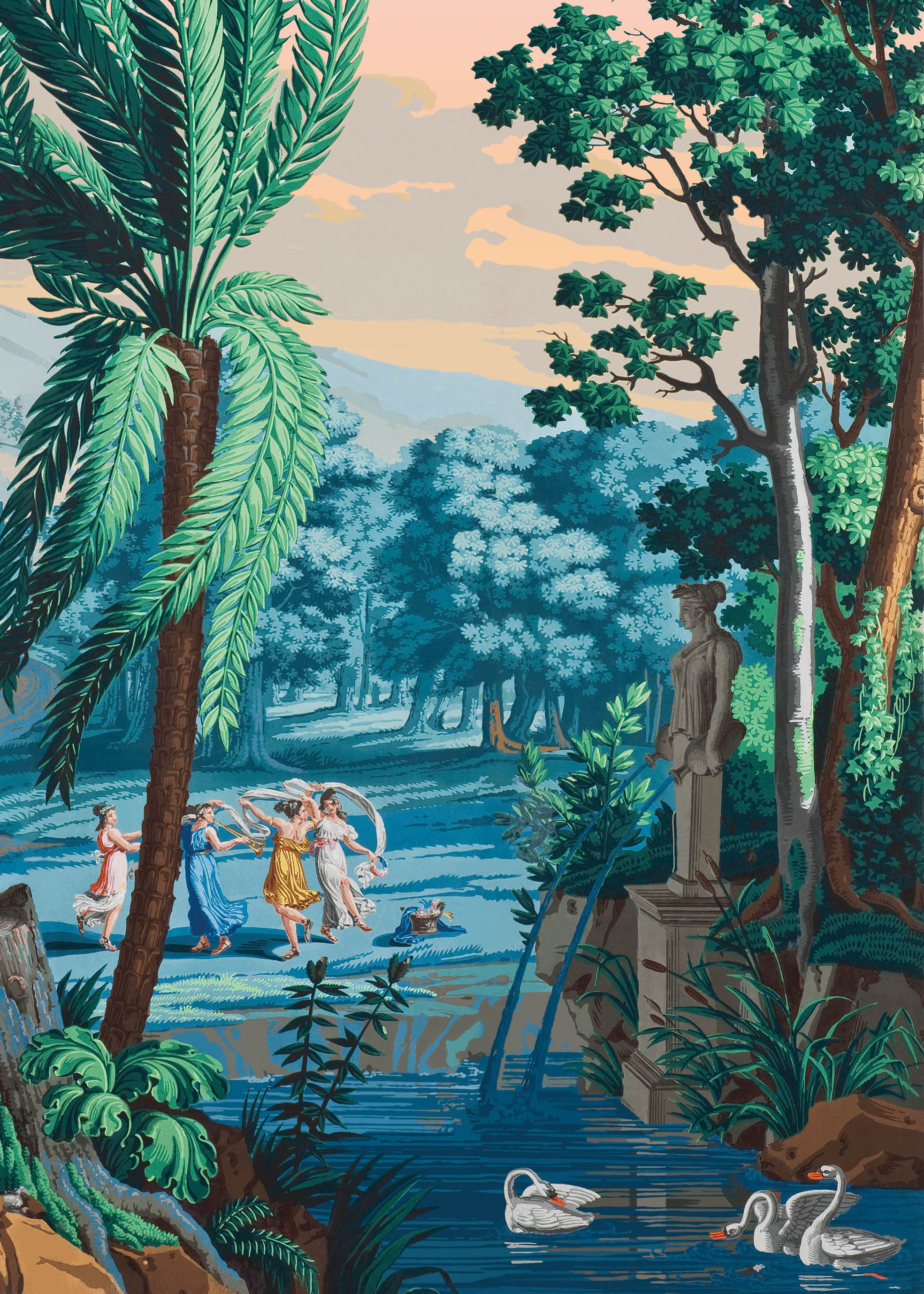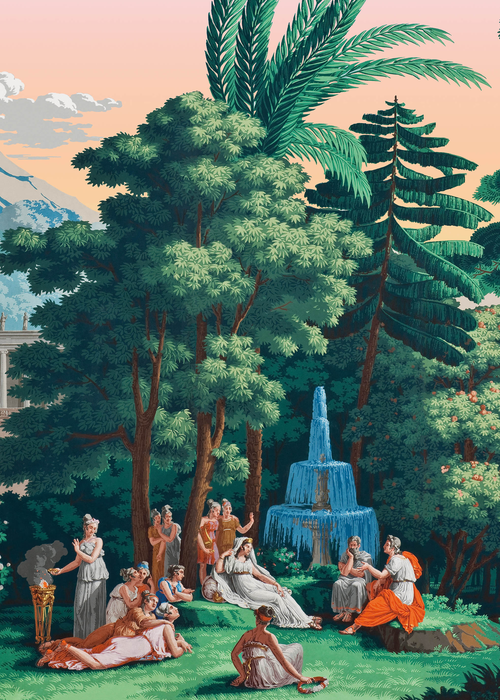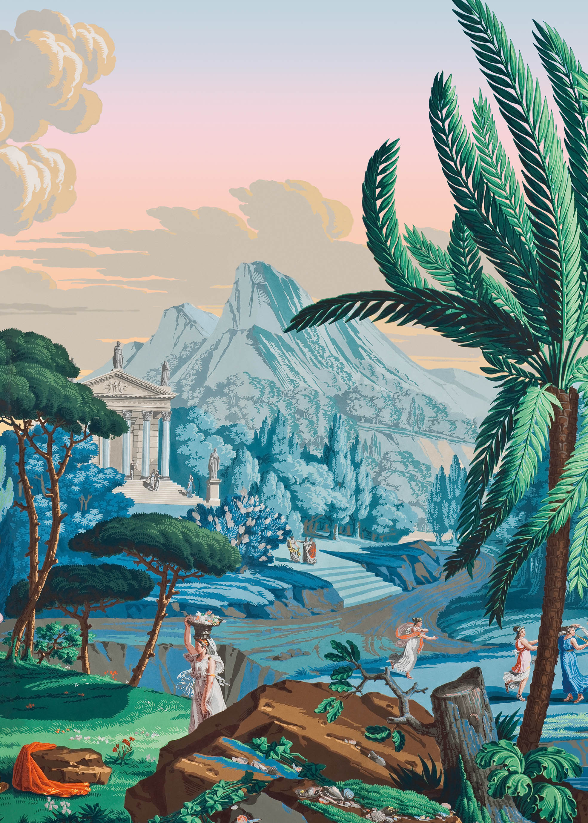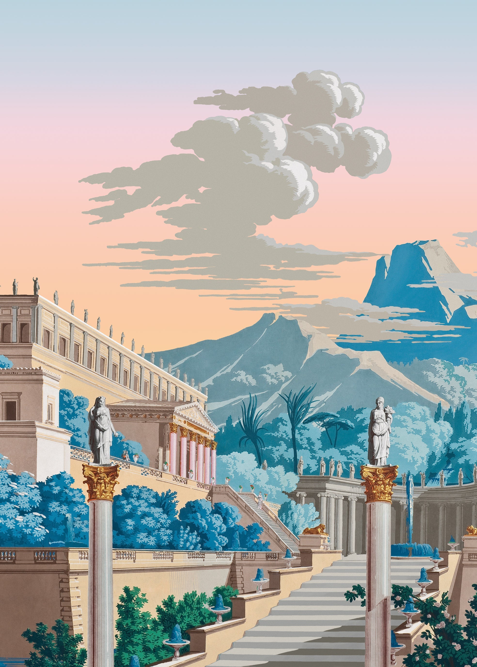 Inspired by the work of Fénelon, this magnificent decoration of an Antique landscape was published in 1818 by the famous Joseph Dufour Manufacture,