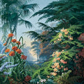 Painted by Fuchs and manufactured in 1861 by Manufacture Desfossé, this panoramic wallpaper masterfully depicts a virgin tropical forest. It was probably exhibited at the International Exhibition in London in 1862.