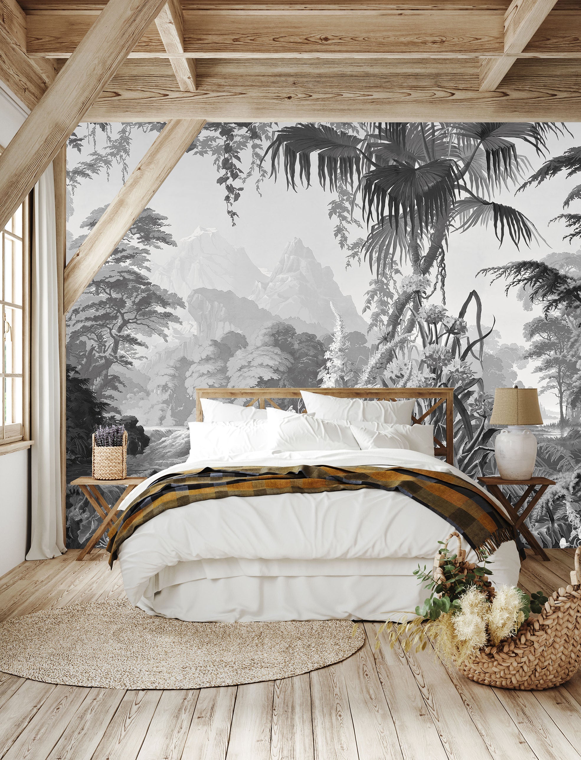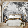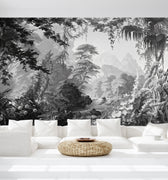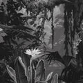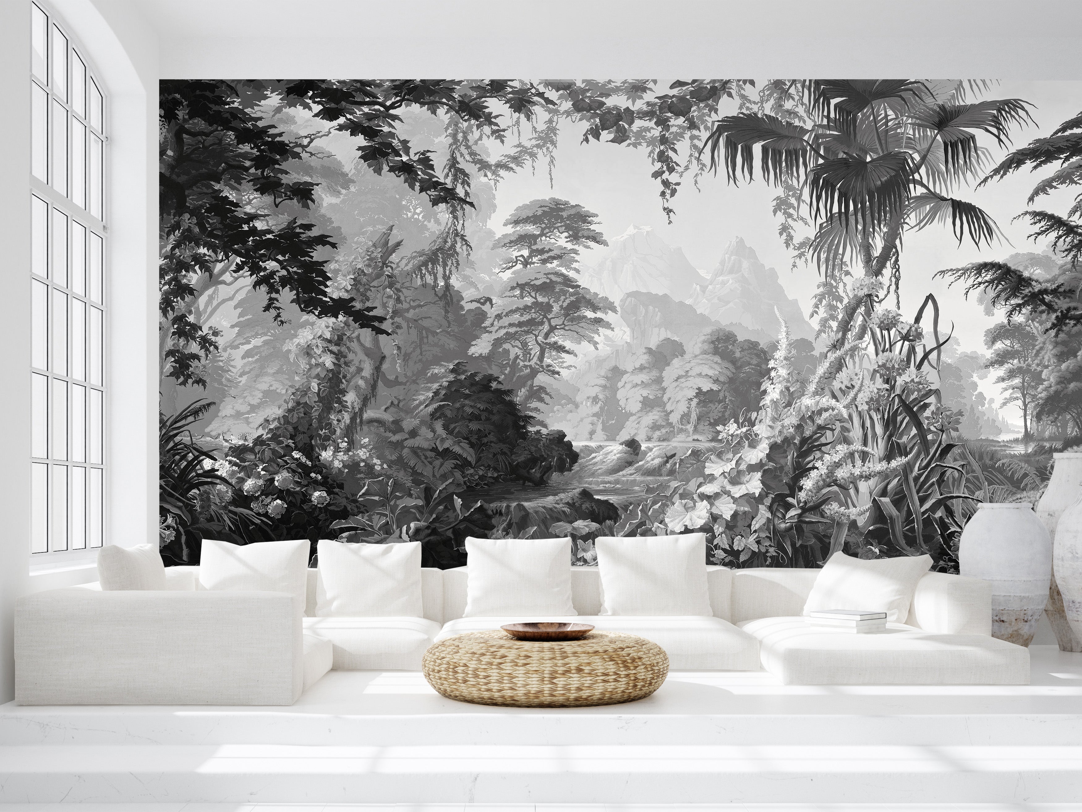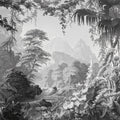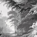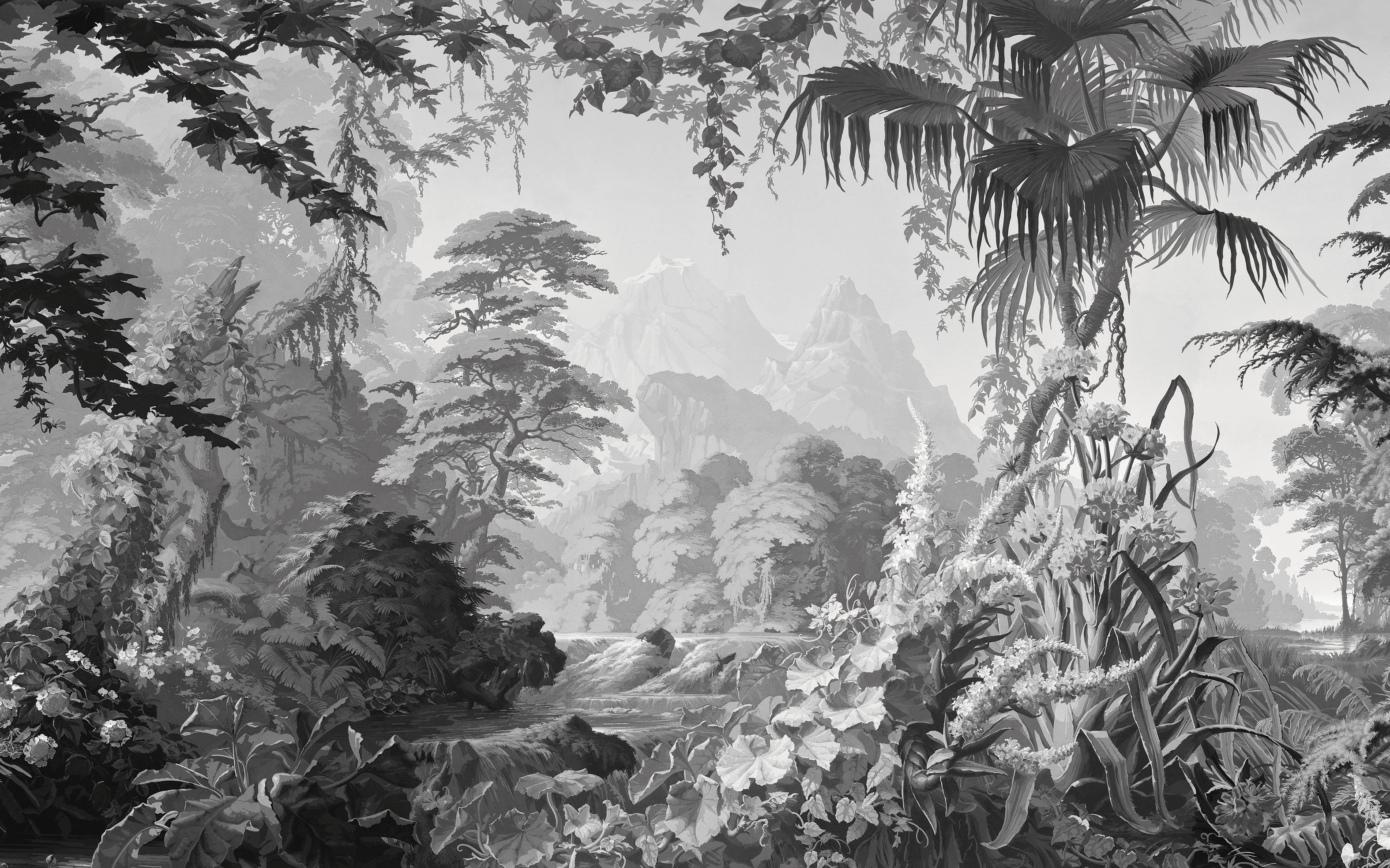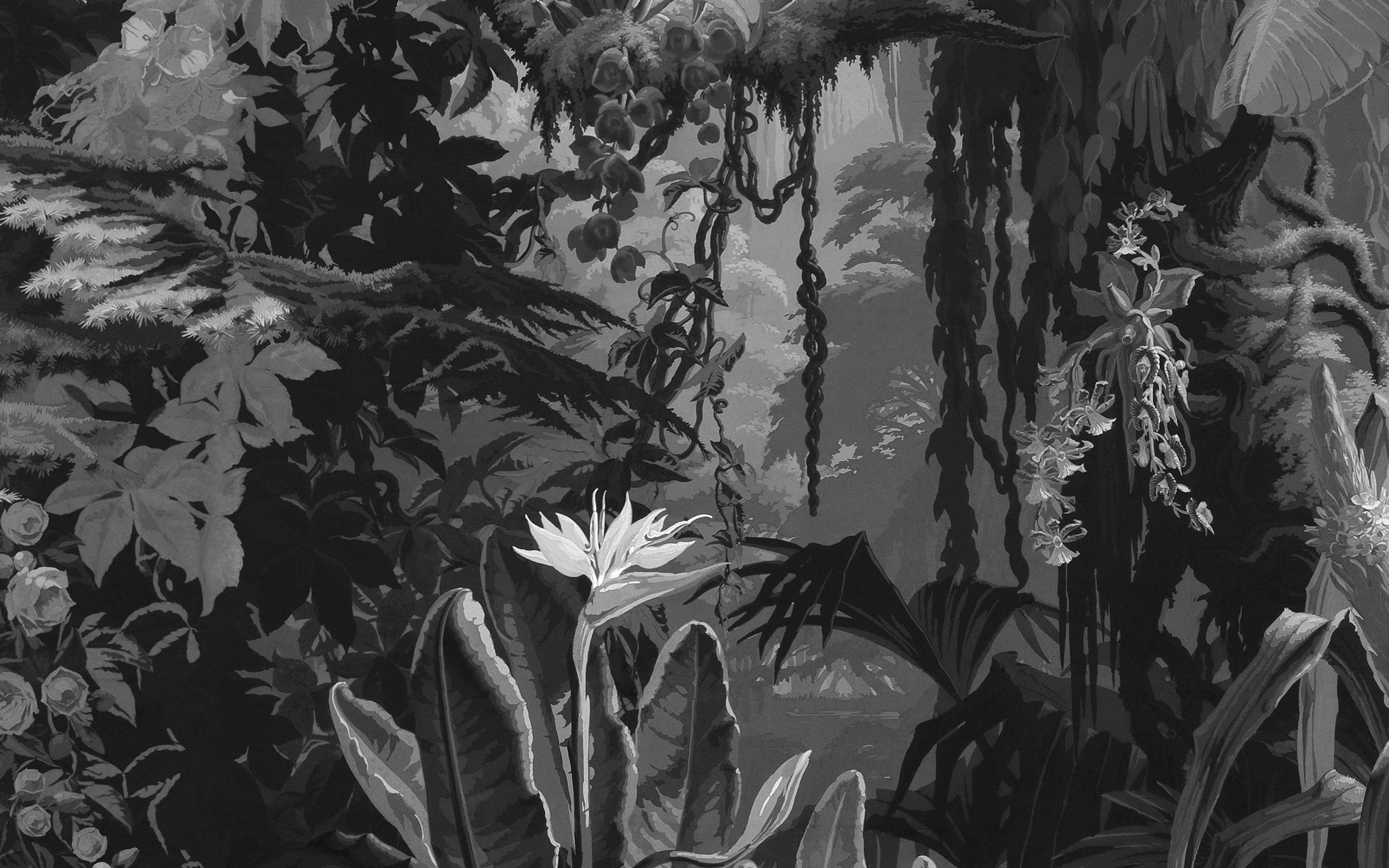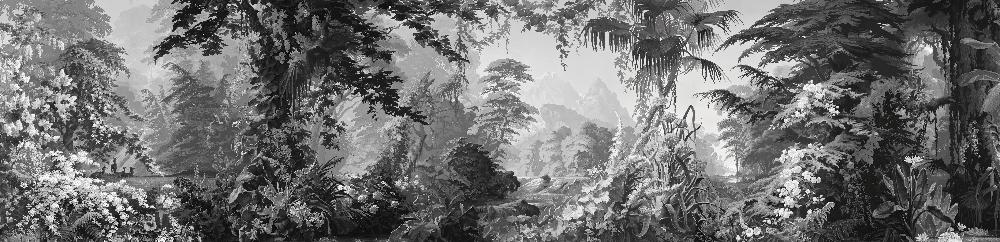 Painted by Fuchs and manufactured in 1861 by Manufacture Desfossé, this panoramic wallpaper masterfully depicts a virgin tropical forest. It was probably exhibited at the International Exhibition in London in 1862.