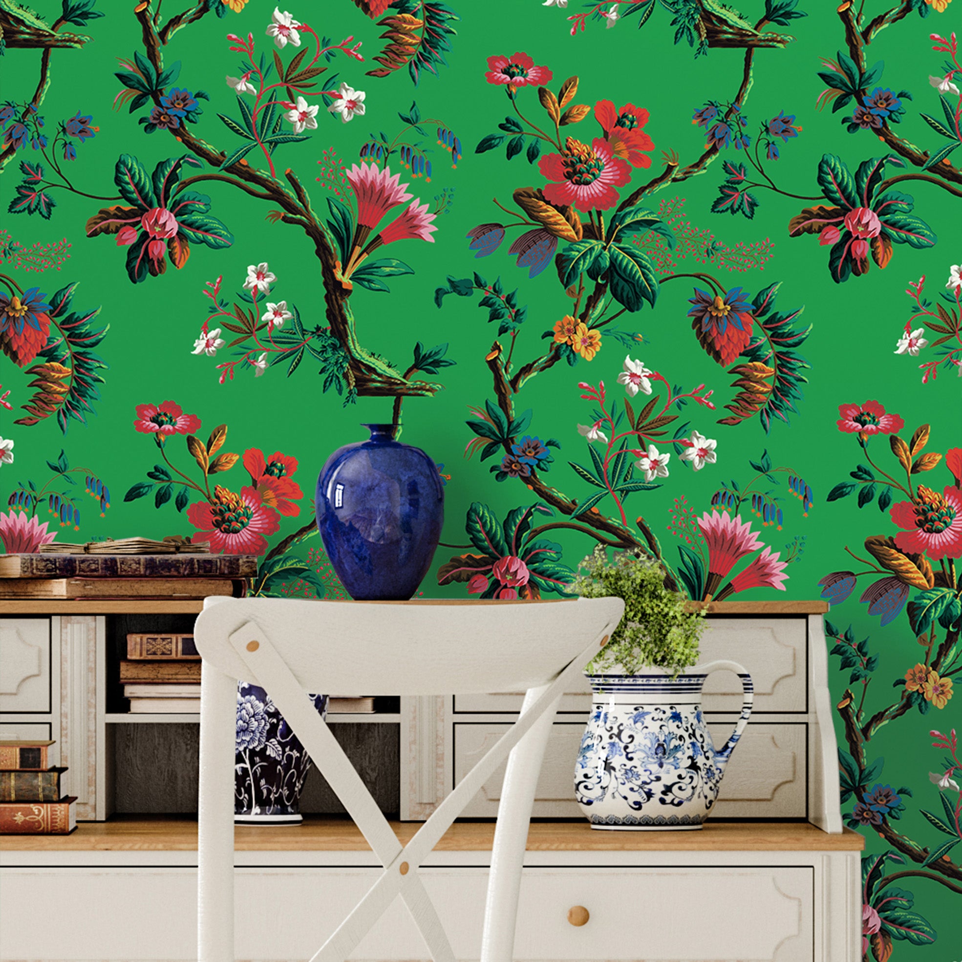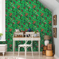Emerald green island flower wallpaper