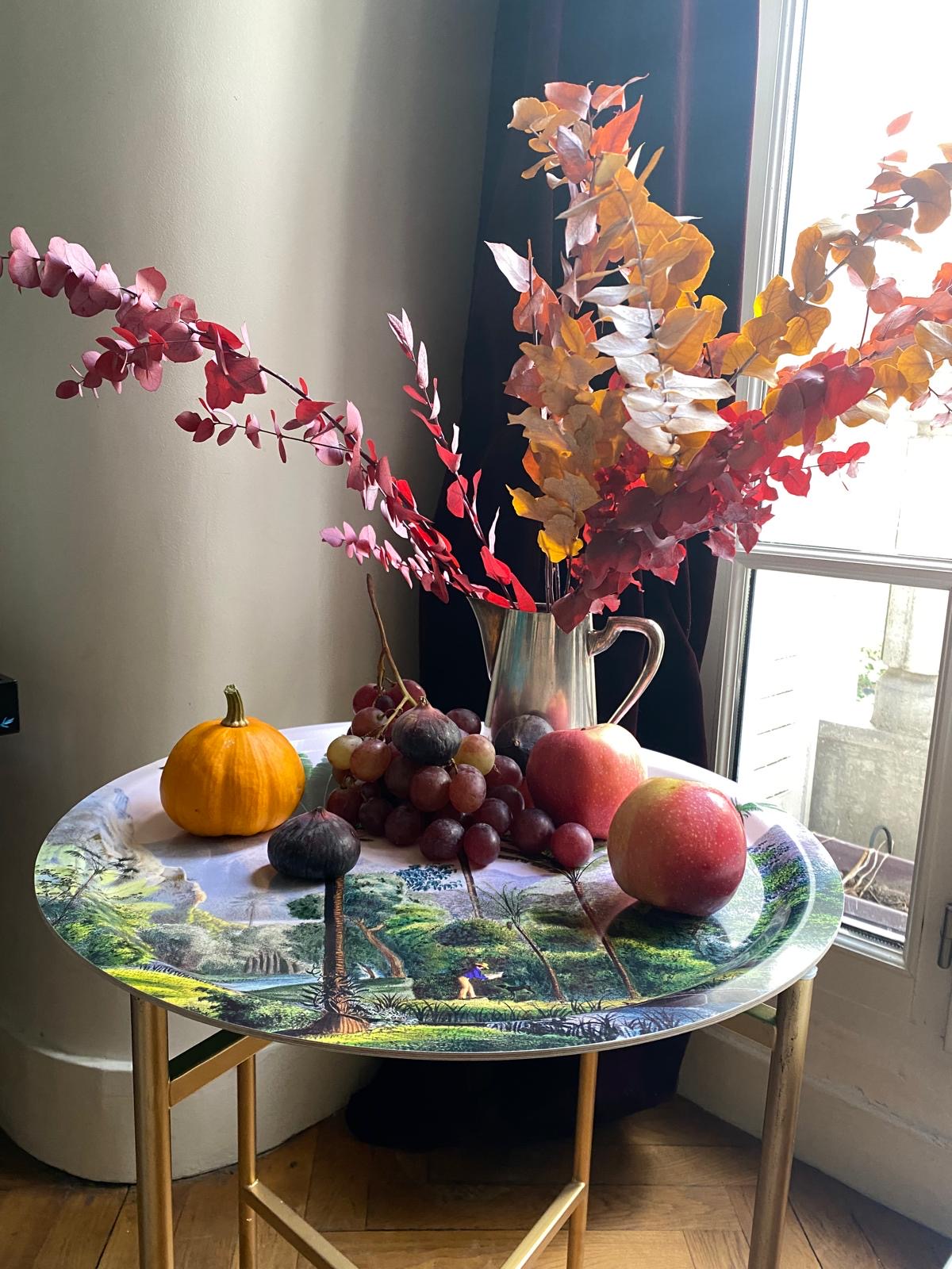 High quality round top, 38 cm in diameter, in birch laminated wood created in Paris and manufactured in Sweden.