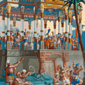Ce spectaculaire décor panoramique, édité en 1818 par la Manufacture Dufour, illustre avec force et poésie la conquête du Pérou par Pizarre au XVIᵉ siècle. On y découvre notamment la célèbre fête du Soleil célébrée au temple de Cuzco, capitale sacrée de l’Empire Inca.