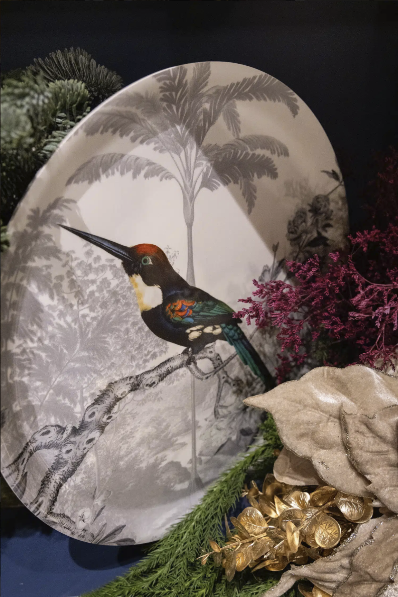 Un paysage de jungle, un oiseau portant le merveilleux nom de Jacamar émeraude et dont les longues plumes ornaient les coiffes de cérémonies des tribus d'amazonie....tout un poème.